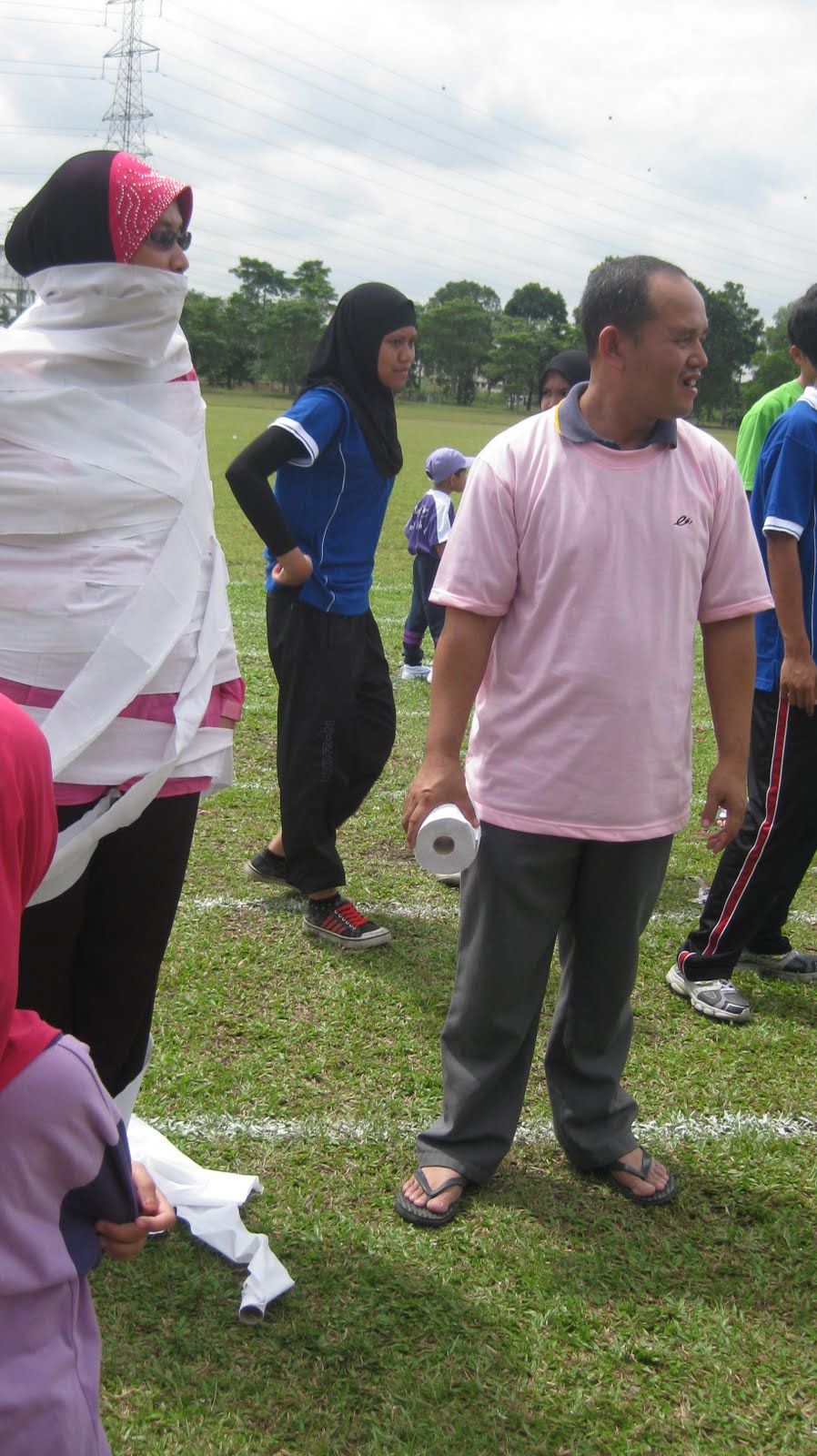 ni acara untuk mak dan ayah... guna kertas tisu... balut badan mak....sapa yg paling kreatif... dialah menang.... |
